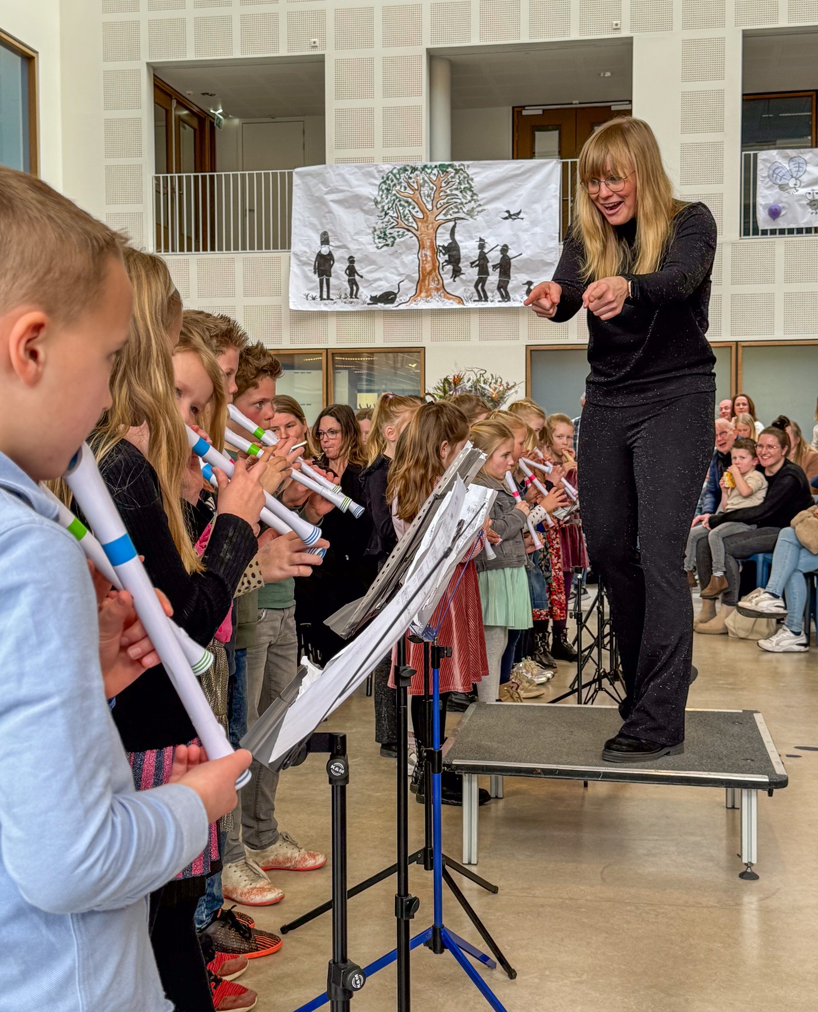 Tijdens Algemene Muzikale Vorming (AMV) leren kinderen blokfluit of xylofoon spelen, noten lezen én maken ze op een speelse manier kennis met muziek. En dat natuurlijk gezellig samen met andere kinderen van groep 4 en 5 (andere leeftijden in overleg).
