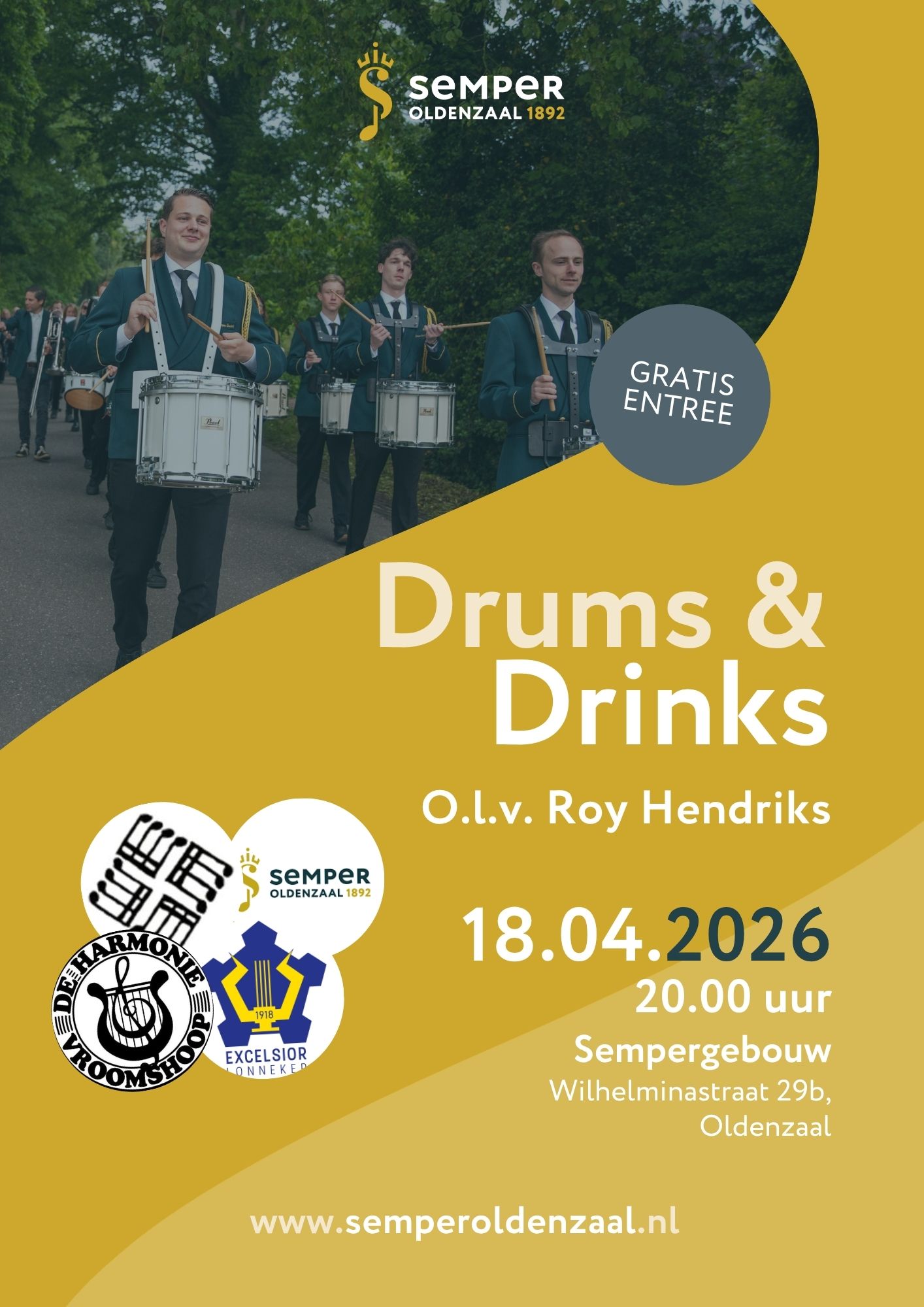 Zaterdag 18 april is het weer tijd voor een nieuwe editie van Drums & Drinks! Onze slagwerkgroep organiseert opnieuw een energieke avond vol ritme, muziek en gezelligheid onder leiding van Roy Hendriks.